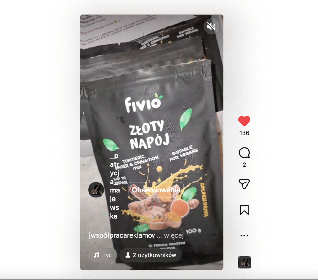 Działania realizowaliśmy w okresie od 07.11.2025 do 31.01.2026 roku. Do wstępnego etapu rekrutacji zgłosiło się aż 737 osób zainteresowanych zdrowym odżywianiem. To pokazało nam od razu, że asortyment fivio budzi żywe zainteresowanie i ma ogromny potencjał do dalszego wzrostu. Z tej szerokiej grupy wyselekcjonowaliśmy 20 głównych testerów, którzy idealnie pasowali do profilu klienta i otrzymali od nas dedykowane paczki.